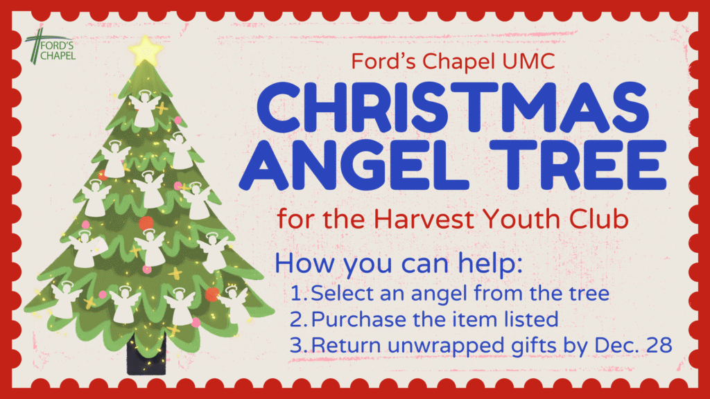 This holiday season, Ford’s Chapel invites you to share the joy of giving through our Christmas Angel Tree. Each year, we partner with the Harvest Youth Club, a local non-profit dedicated to nurturing children through their after-school program.