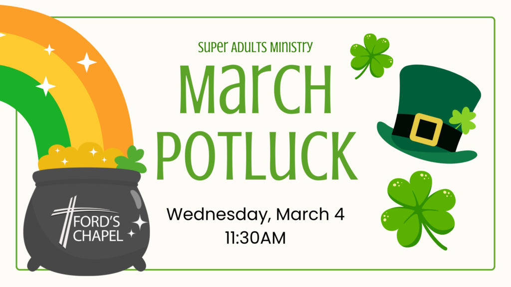 Super Adults Ministry March Potluck — St. Patrick’s Edition!