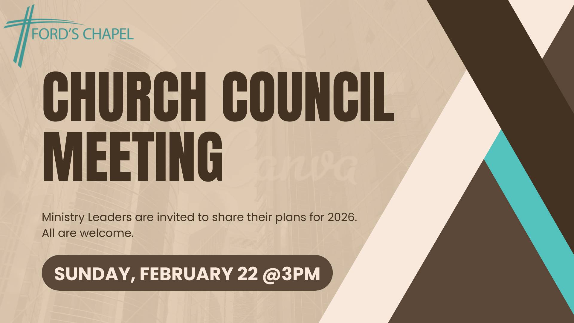 Church Council is where we dream, discern, and make decisions together for the future of Ford’s Chapel. If you care about the direction of our ministries, want to stay connected...