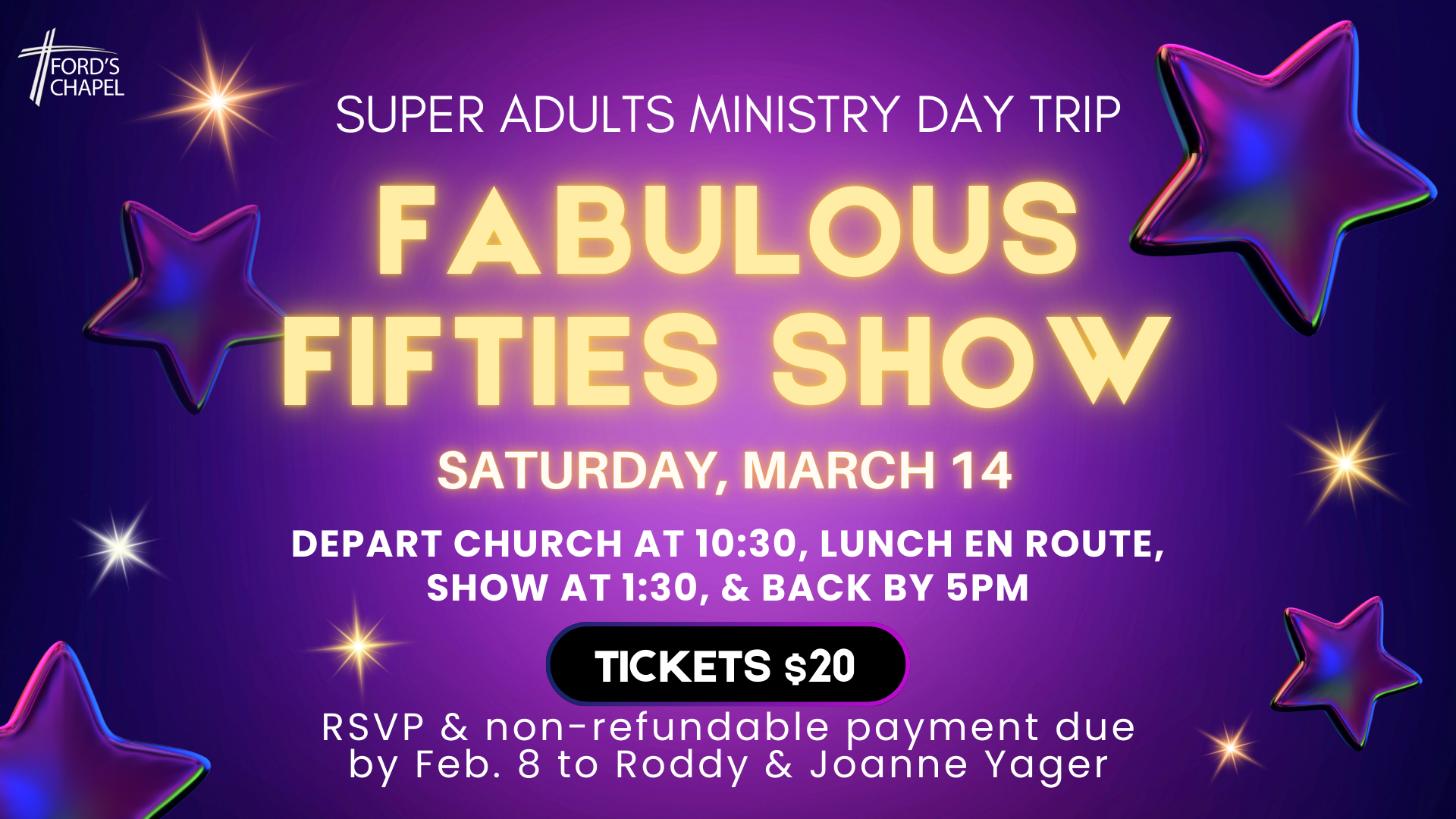 Join us for a fun day trip to Fayetteville, TN on Saturday, March 14. Meet at Ford’s Chapel at 10:30 AM. We’ll enjoy lunch on the way, then head to...